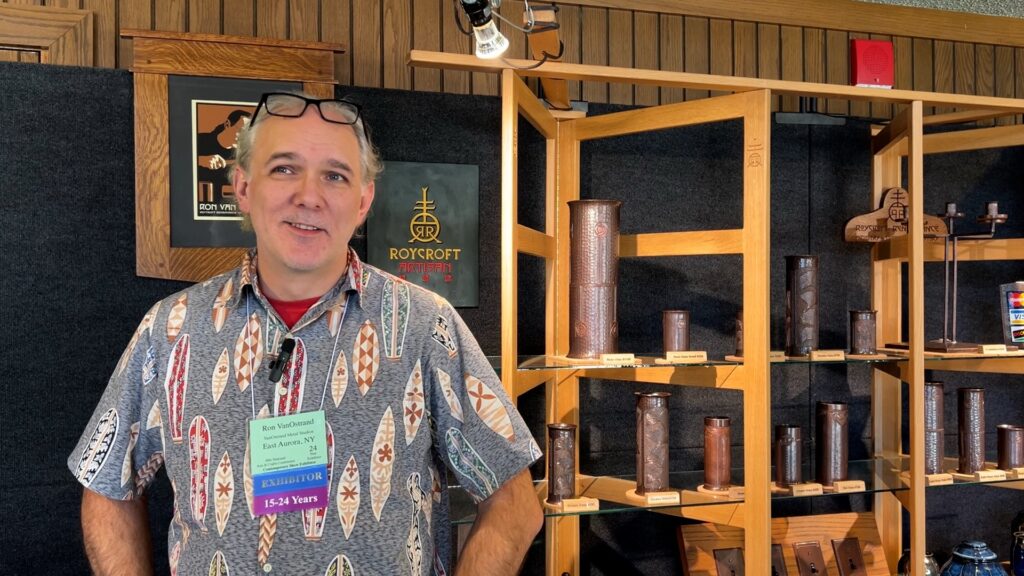 Ronald VanOstrand of East Aurora exhibits his metalwork at the Grove Park Inn during the 38th National Arts and Crafts Conference. VanOstrand was one of several Roycroft Renaissance artisans taking part in the annual event held in Asheville, NC from Feb. 21-23.